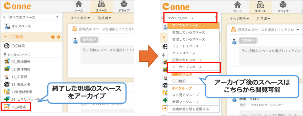 現場や業務ごとに作ったスペースについて、「現場が終わった後はどうしよう?削除したほうがいいのかな?」と迷われたことはありませんか?