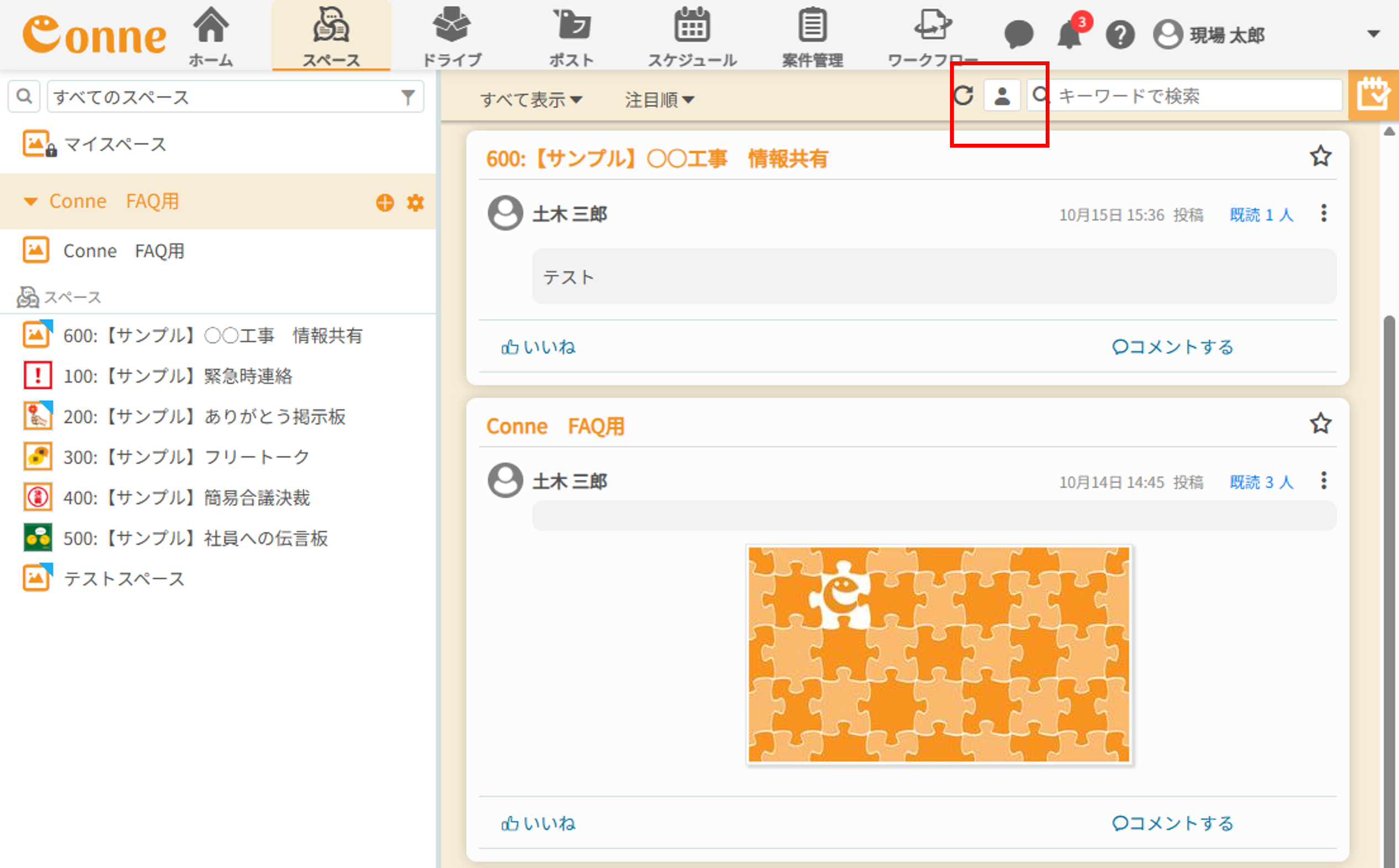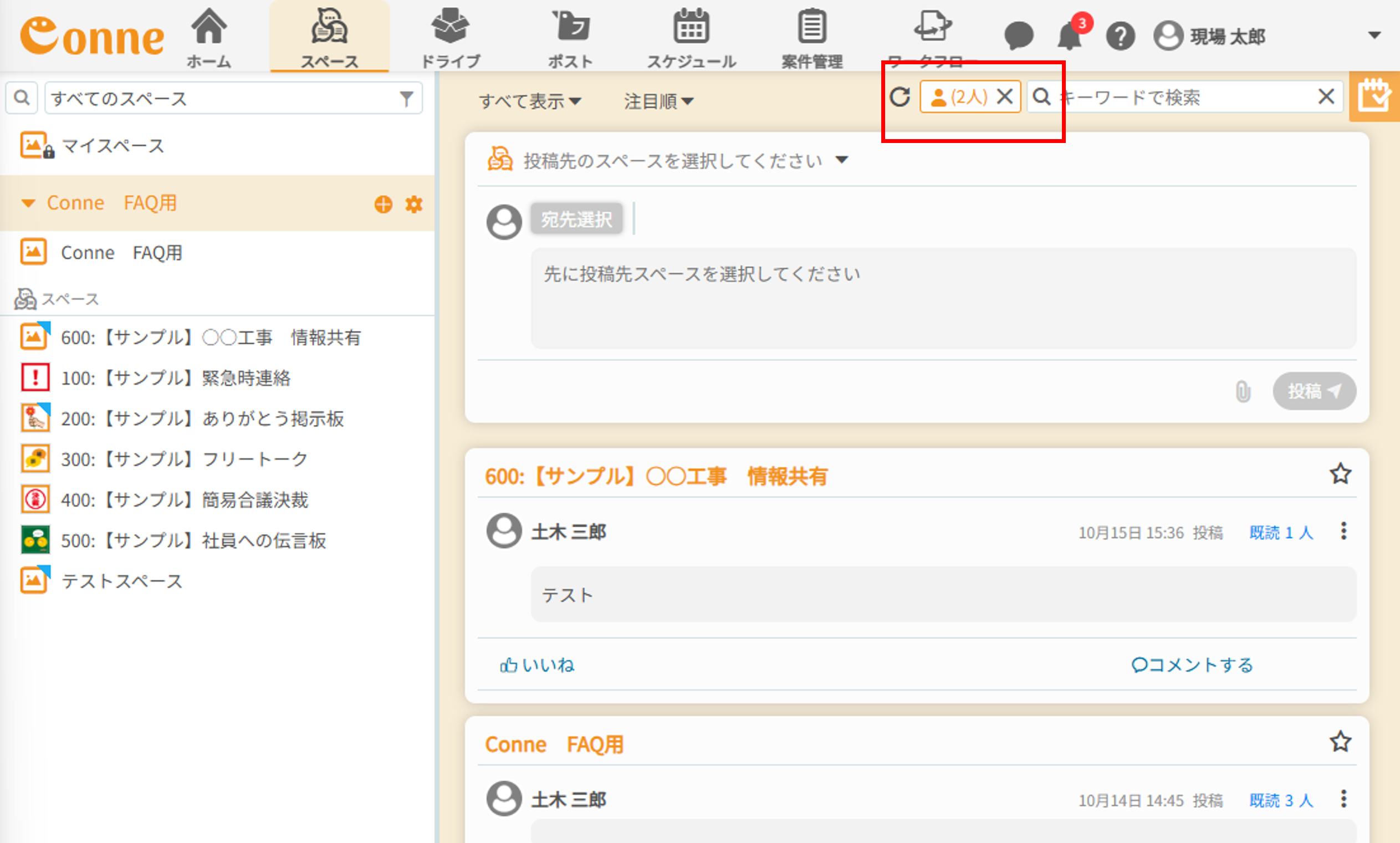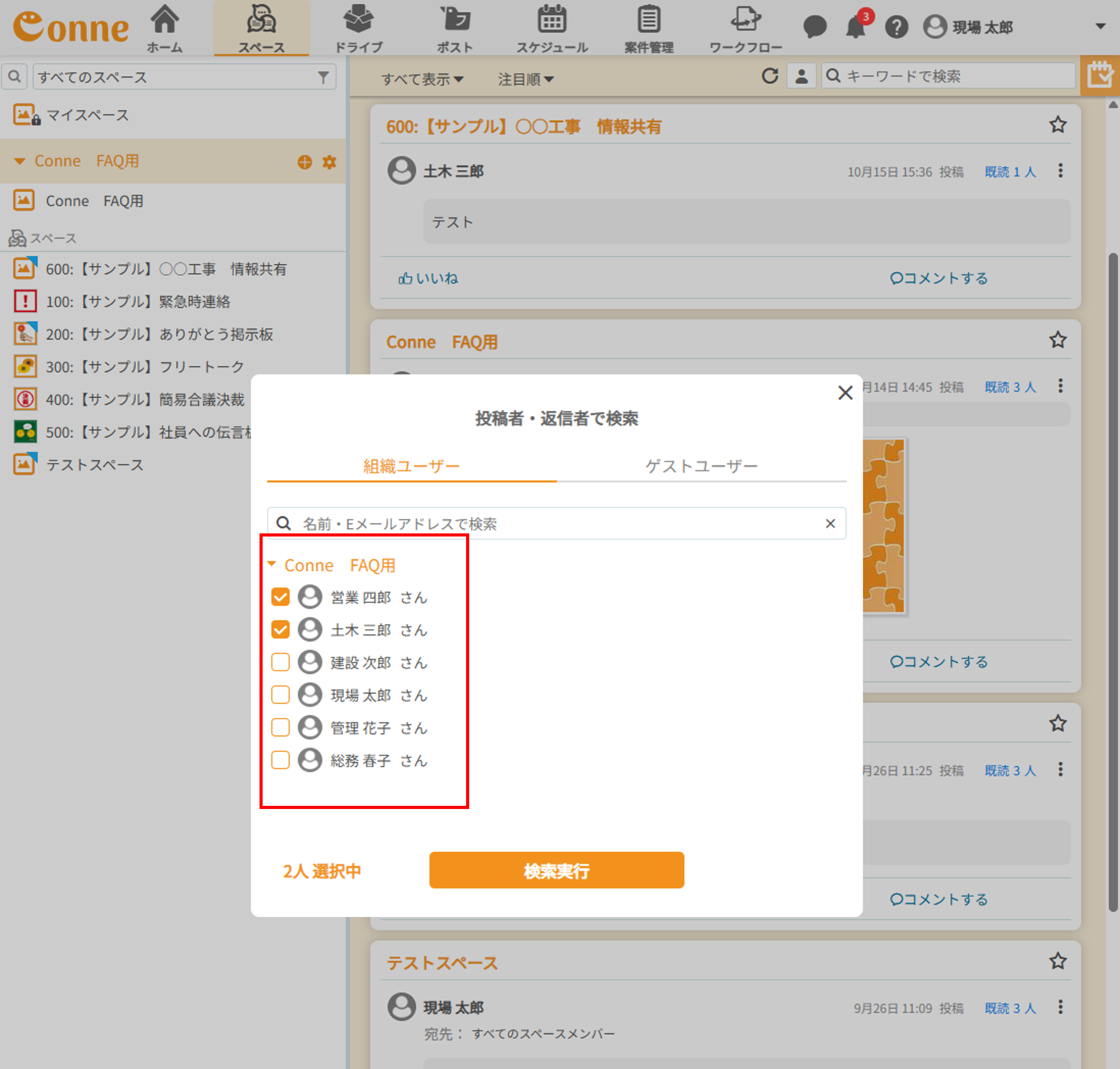 スペースの投稿内容を探す際に、ユーザー名で検索できます。
