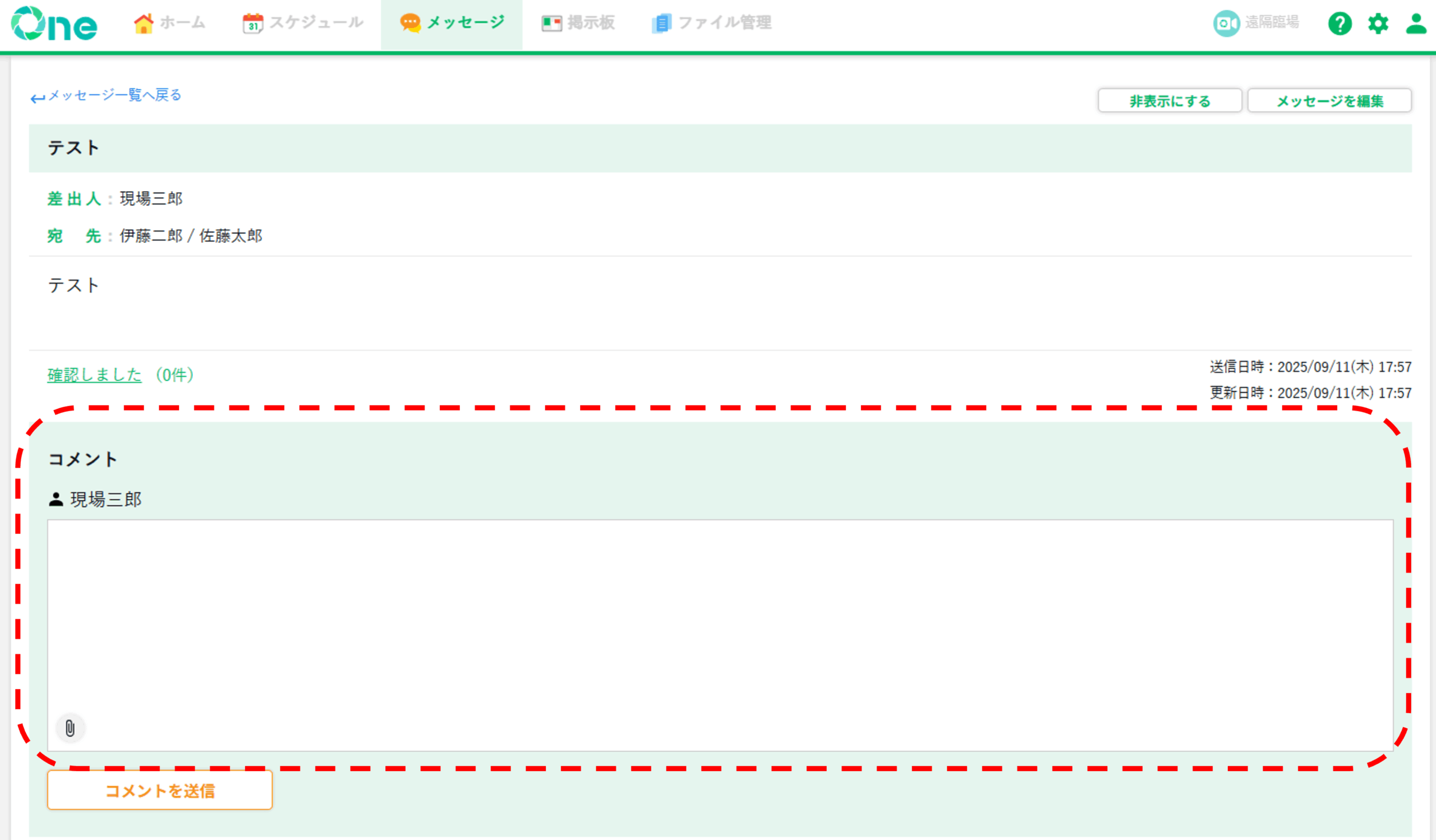 メッセージ機能URL:https://one-msg.genbacloud.com