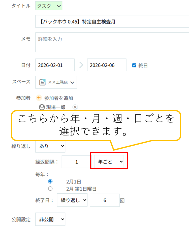 ※「年ごと」の初期設定は、繰り返し回数6回となっております。