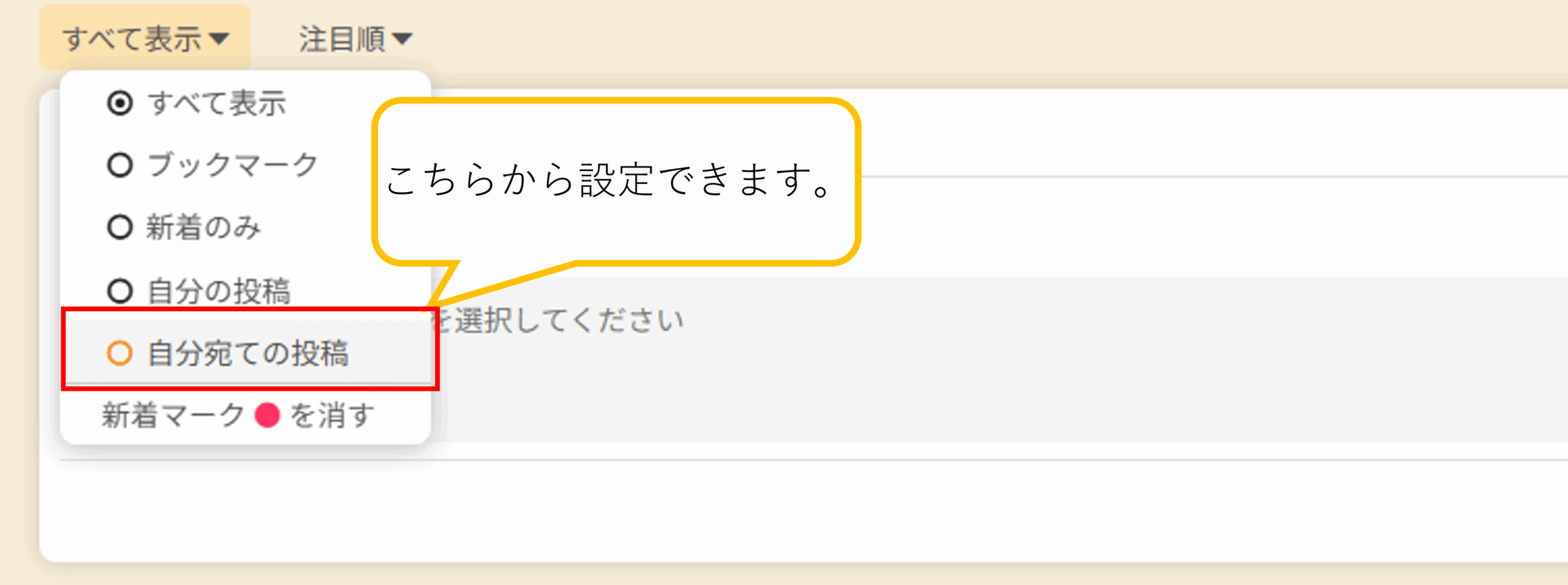 「自分宛ての投稿」 絞り込み機能